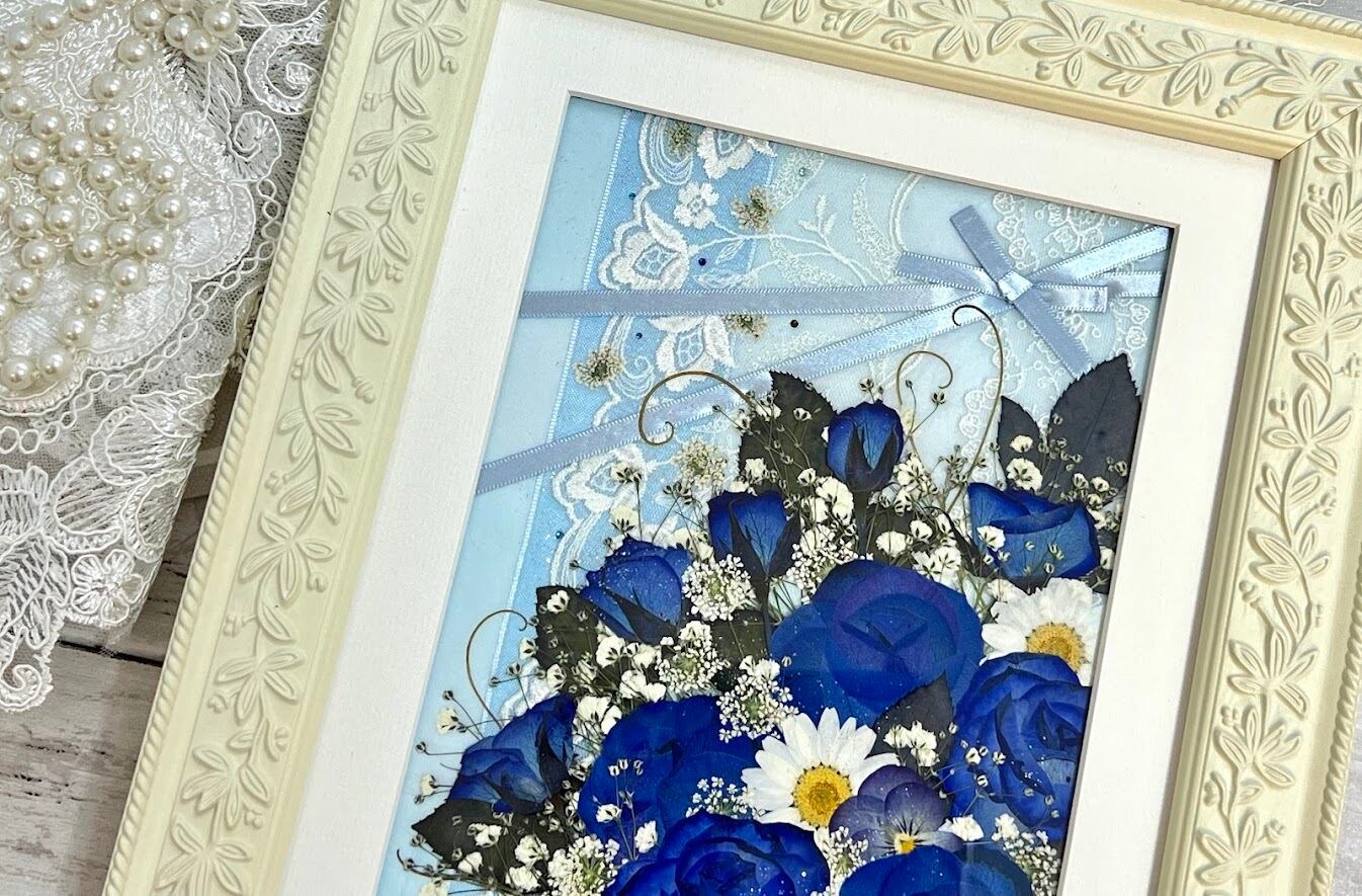 青と白のコントラストが神秘的で、上品な雰囲気です。