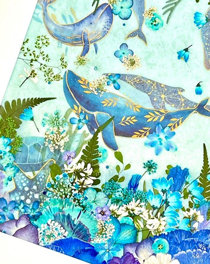 ブルー&グリーン系の押し花が涼しげで南国の雰囲気を演出!