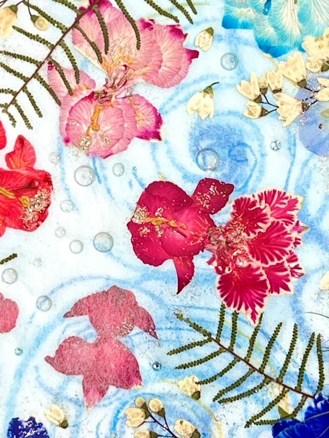 涼を呼ぶ小さな金魚たちの押し花アート額 スクエアタイプ