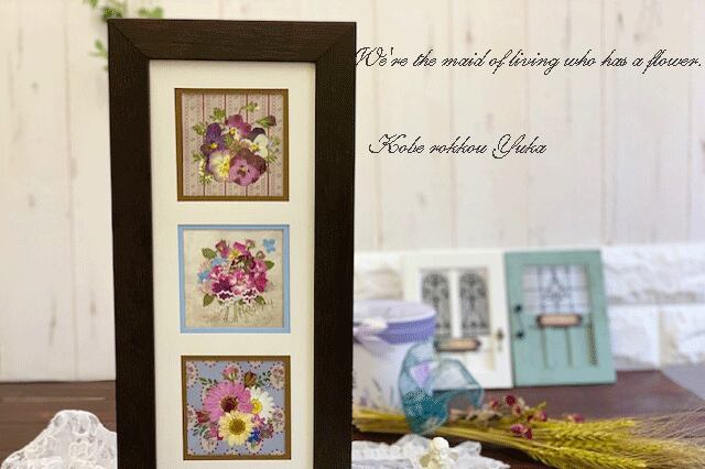 アンティークなインテリア押し花フレーム 3窓Sサイズ