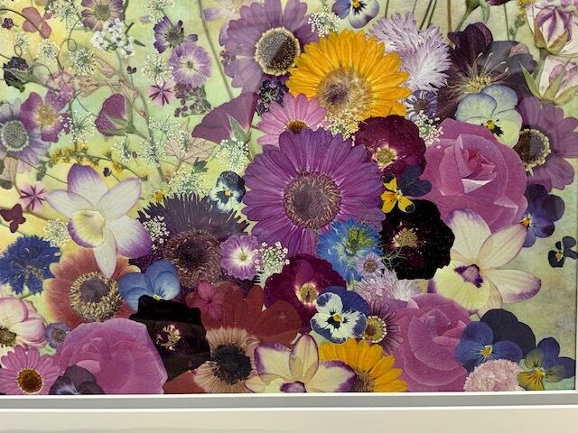 ホワイトとライトグレーの中マットもとても上品な品格のある華やかな押し花アートとなっています。