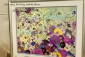 角度によっていろんな表情が楽しめるお得感のある押し花アート額です。