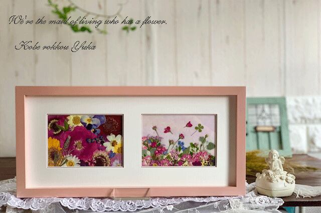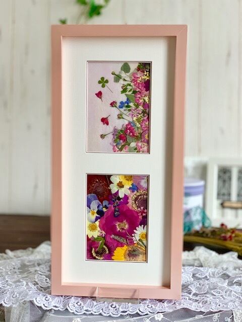 ピンクのパールがかったフレームと押し花の色合いが良く合います。
