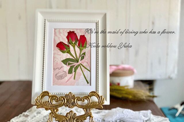 プレゼントにぴったりな3輪のバラが花束になった押し花フレーム額です。