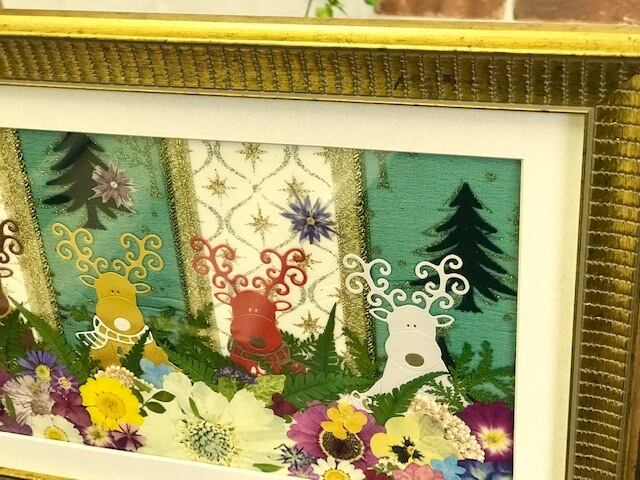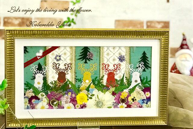 トナカイさんのクリスマス押し花アートインテリア額 02