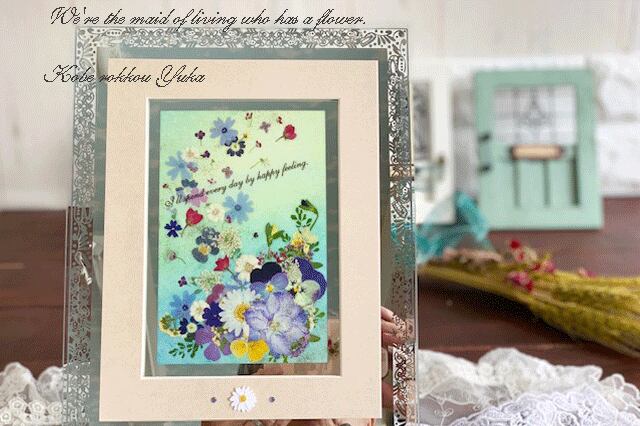 キラキラ輝く透け感のあるガラス押し花インテリアフレーム02