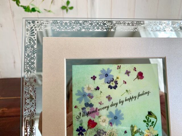 可憐な押し花と透け感のあるガラスのフレームがとてもおしゃれです。
