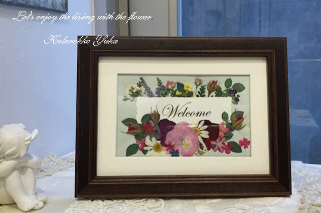 押し花で飾った「ウェルカムボード」は、玄関に置いたり、ミニパーティーの会場に飾ったりと、活躍の場面は
