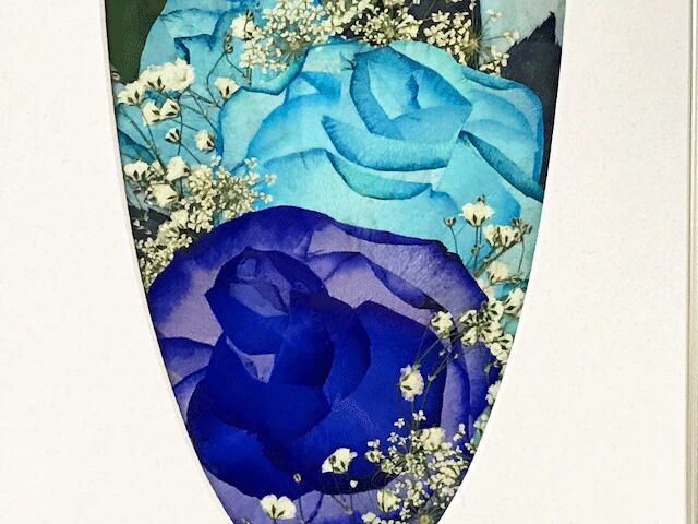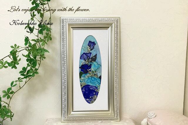 珍しい青いバラの押し花額です。