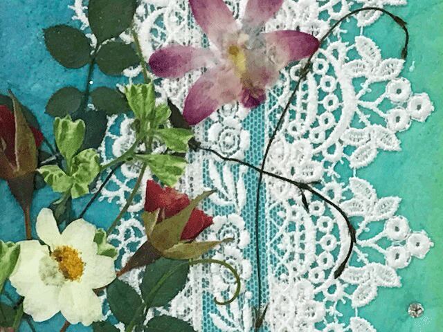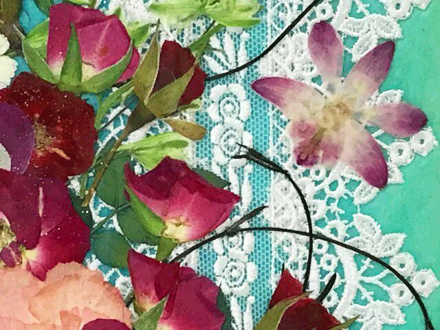 繊細なレースリボンと押し花はとても相性がよく、上品なインテリアとして公表です。