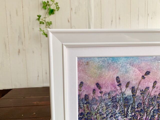 いろいろな種類のラベンダーが、たくさんたくさん入った押し花額は、