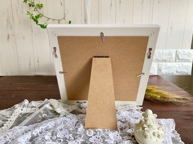 後ろに額立てが付いているので、独り立ちで飾れます。
