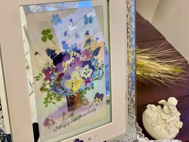 可憐な押し花と透け感のあるガラスのフレームがとてもおしゃれです。