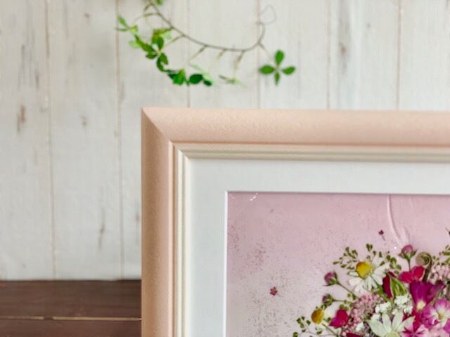 優しい淡いピンクの押し花花瓶 インテリアフレーム額