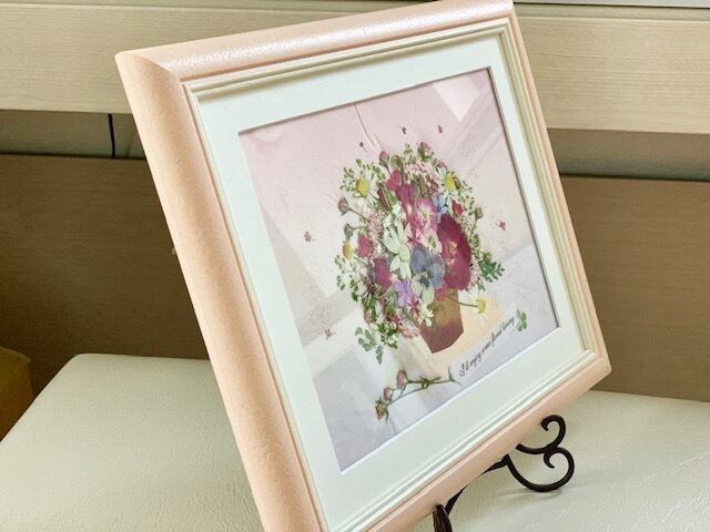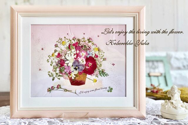自然のお花そのままに押し花にして、平面のフレームの中に入れておりますので、