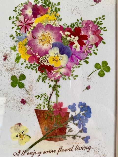 かわいい押し花がたくさんはいったトピアリーのデザインは、