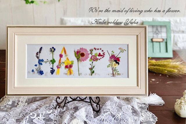 「HAPPY」のお花が微笑ましい押し花額 押し花アート