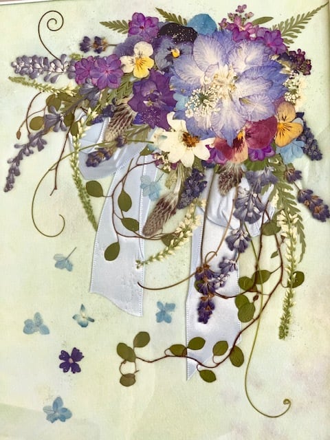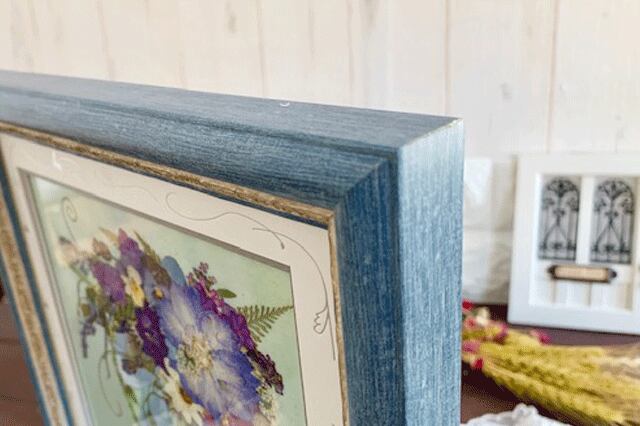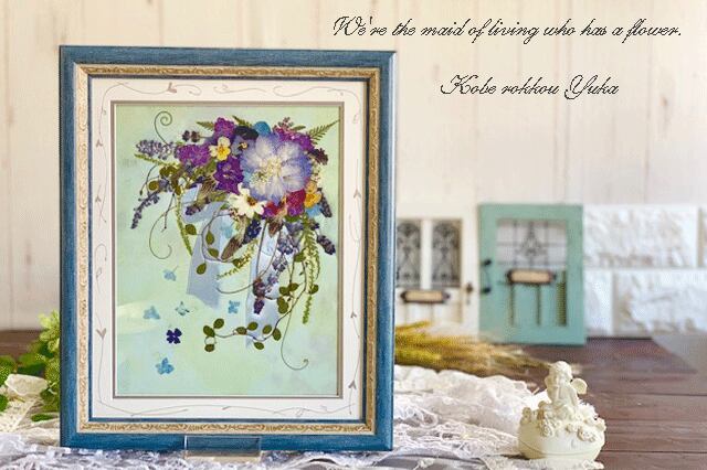 大人っぽいブルー系の小花をデザインした爽やかな押し花アートフレームです。