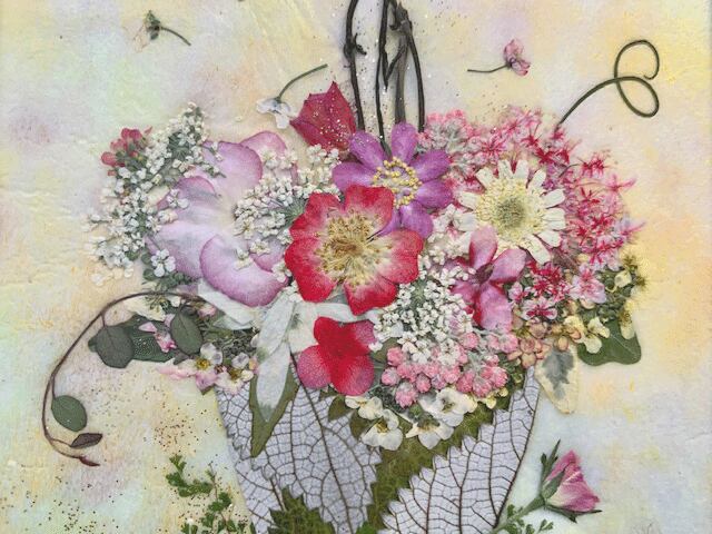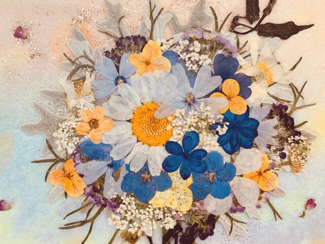 1段1段ちがった表情の可憐な押し花たちに思わず、気持ちも穏やかになります。