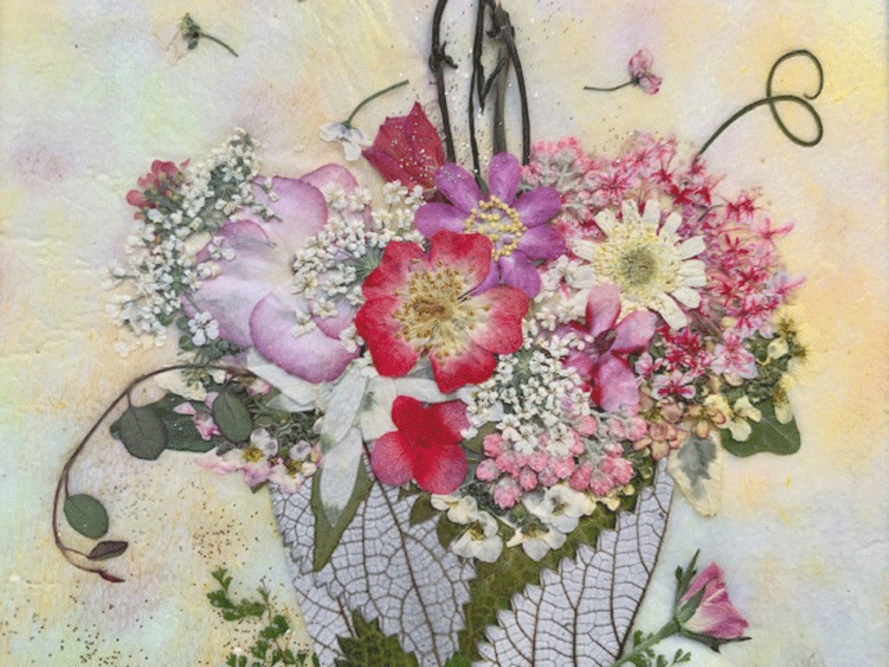 優しい色合いの和紙の台紙と自然のお花がよく似合います。
