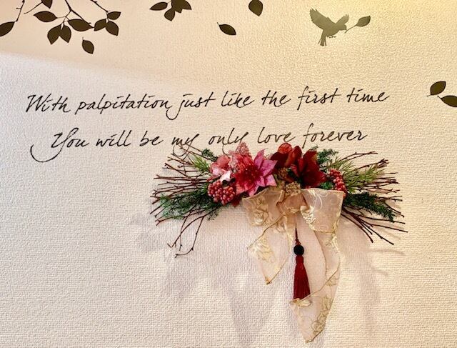 クリスマスを華やかに演出するピンクのポインセチアのスワッグです。
