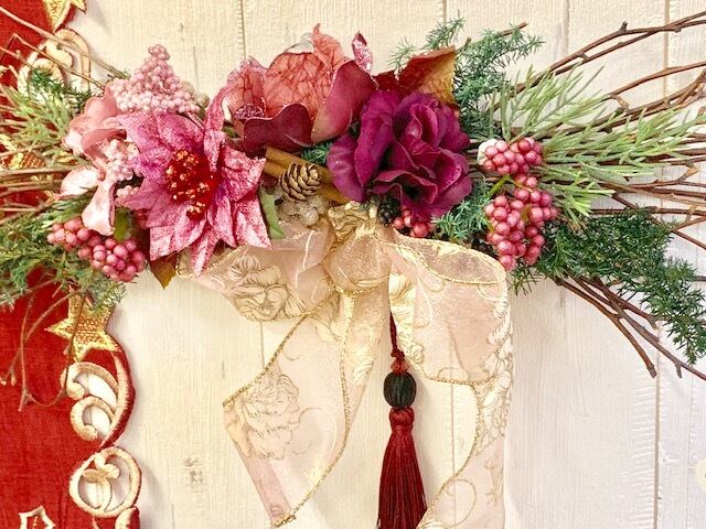 ゴージャスなピンクゴールドのクリスマス風スワッグ