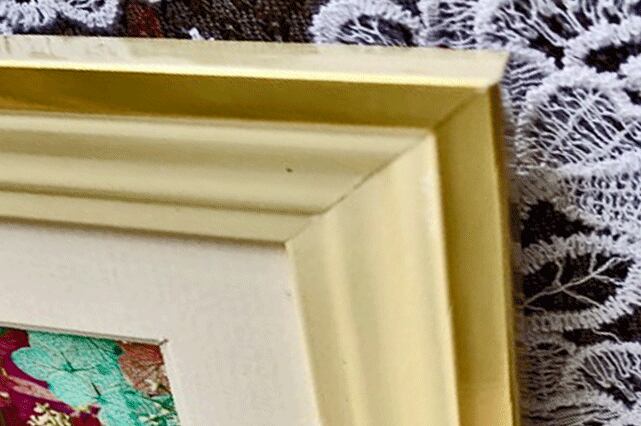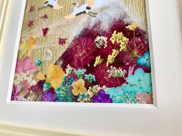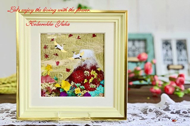 ゴールドラインの縁起の良い赤富士風水額 押し花アート