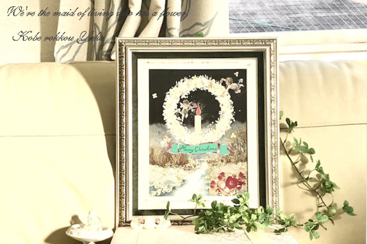 静かに時が流れる聖夜のクリスマスにはピッタリの押し花アート額です。