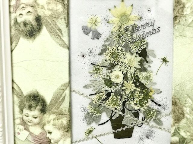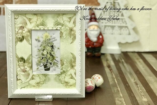 おしゃれなフレームにオリジナル中マットのクリスマス柄が可愛らしい押し花アートクリスマス額です。