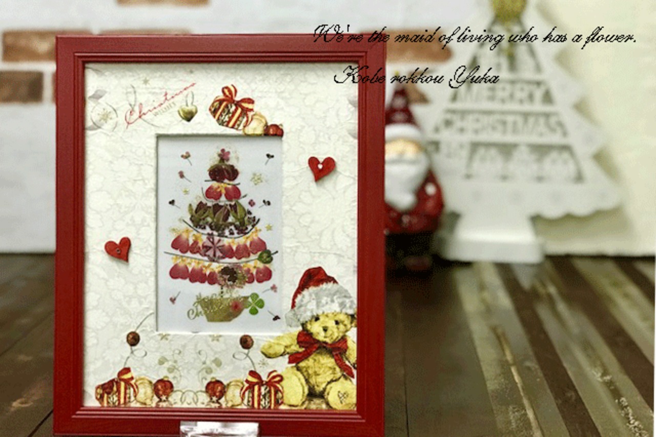 おしゃれなフレームにオリジナル中マットのクリスマス柄が可愛らしい押し花アートクリスマス額です。