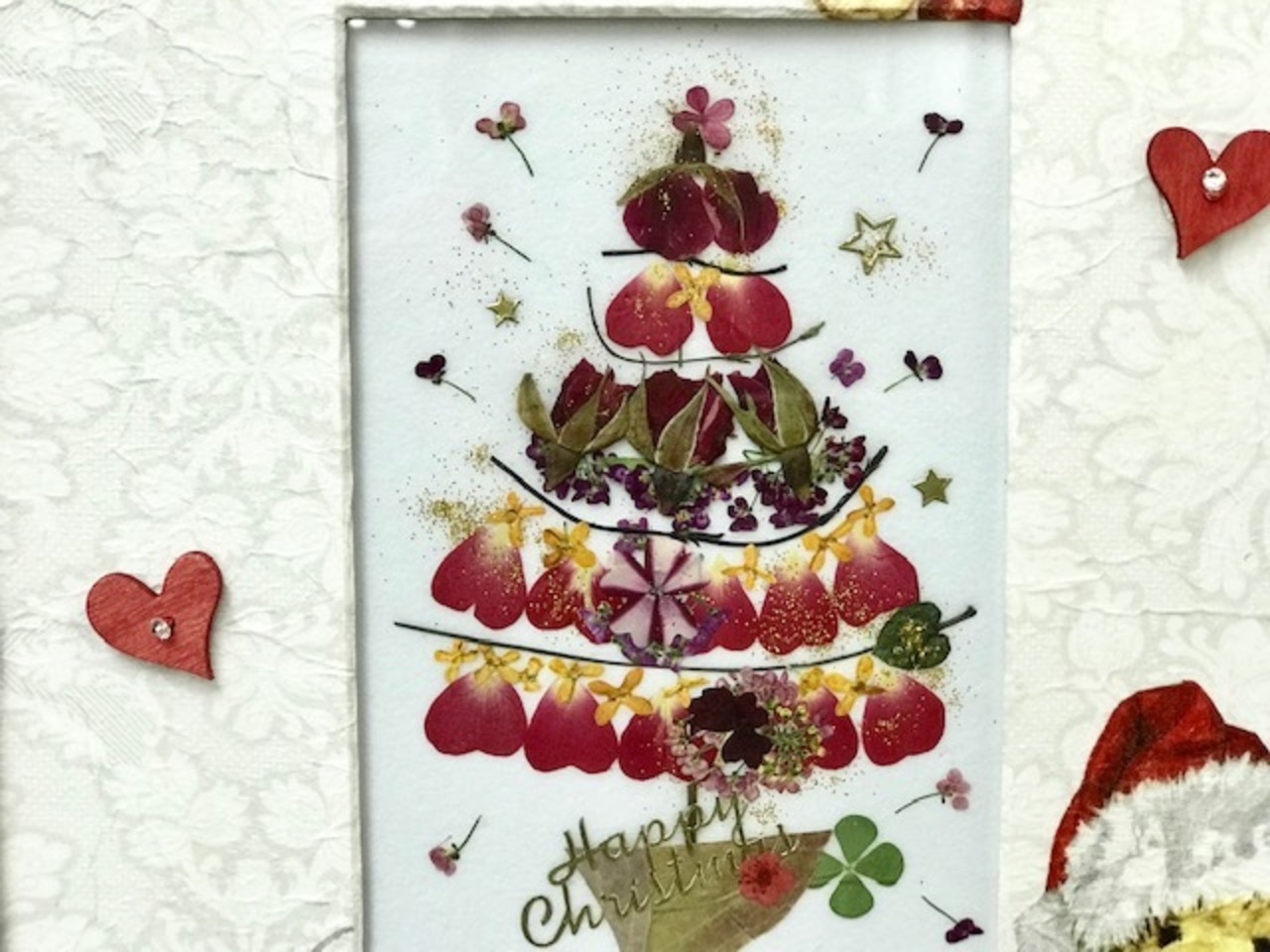 おしゃれなクリスマスツリーには、かわいい押し花小花もたくさん入っています。