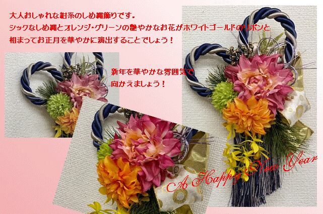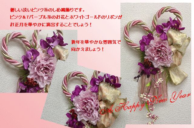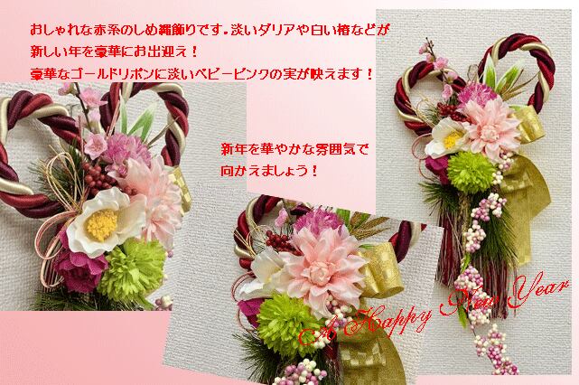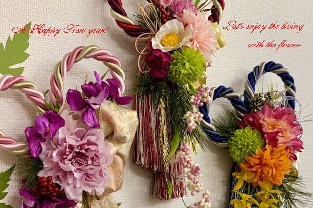 どれもしっかりとしたしめ縄の土台に可憐なアートフラワーがデザインされています。