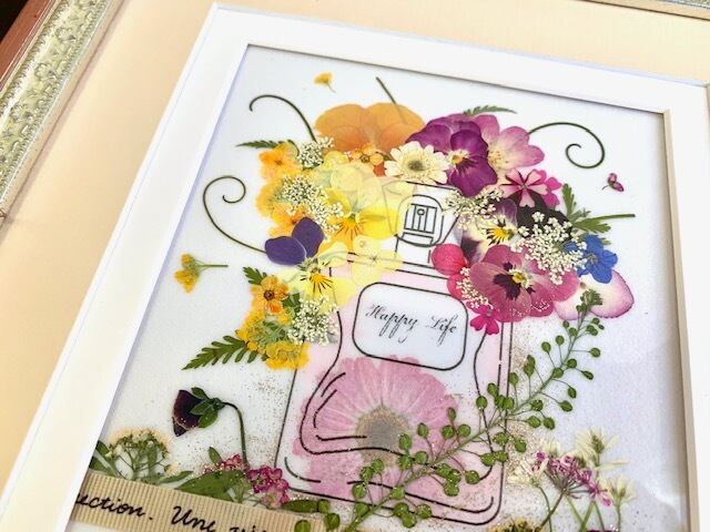 おしゃれな押し花香水瓶のインテリアフレーム