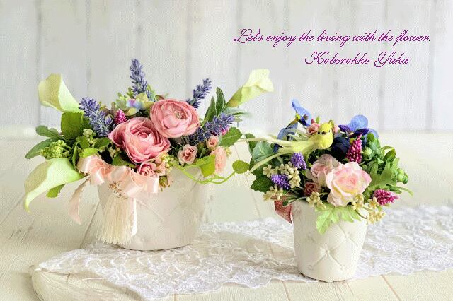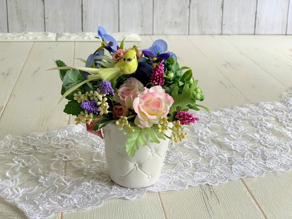 お得2個セット!アートフラワーのインテリア花瓶B 小鳥付き