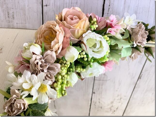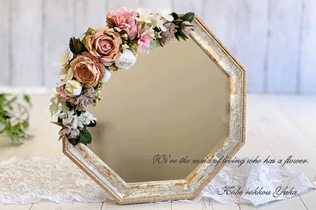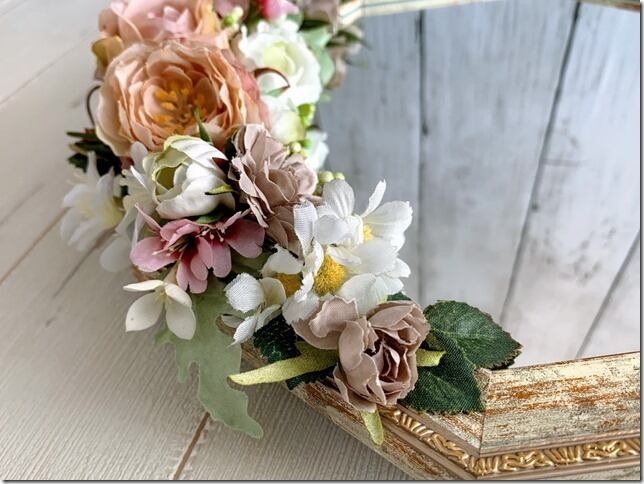 アンティークホワイトフレームに実り多き実や淡いアンティークホワイト薔薇がデザインされています。