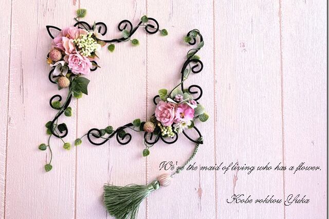 アーティフィシャルフラワーで飾ったアンティーク風のコーナー飾りがおしゃれです。