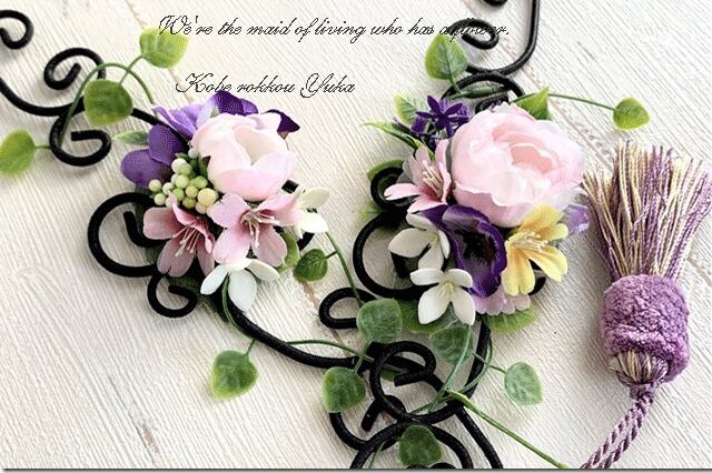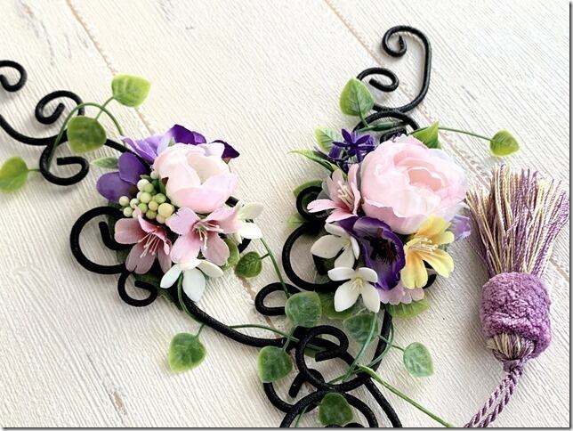 アーティフィシャルフラワーで飾ったアンティーク風のコーナー飾りがおしゃれです。