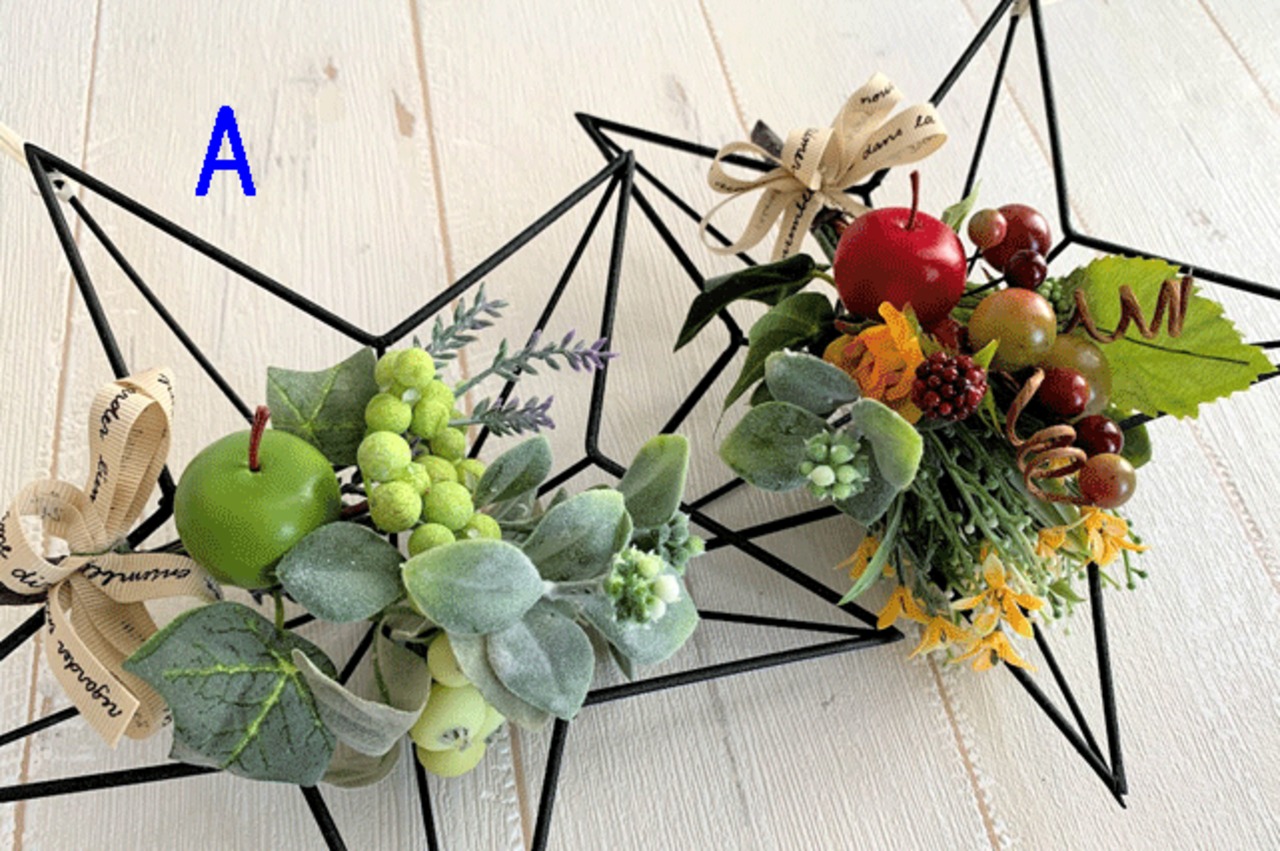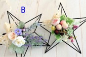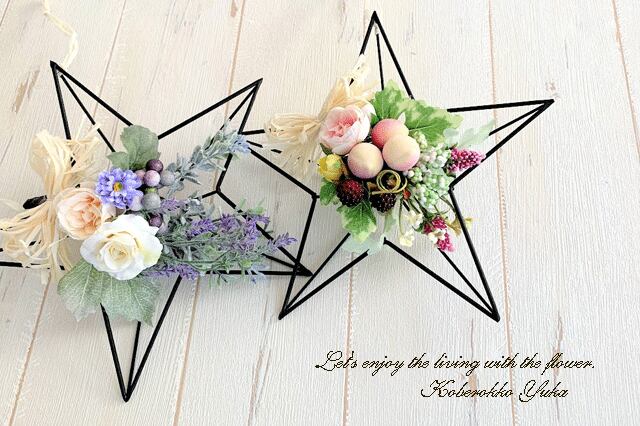 アーティフィシャルフラワーで飾ったアンティーク風の星型オブジェがおしゃれです。