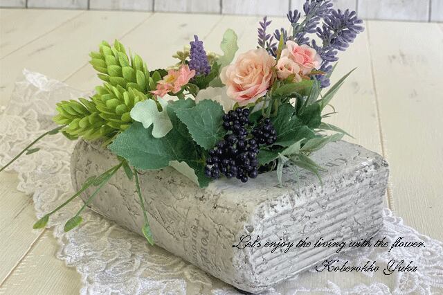 お花の優しい風合いと石のごつごつ感がとてもオシャレです。