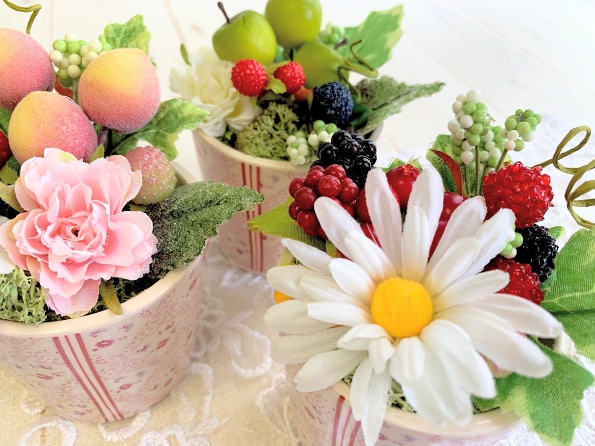 グリーンアップルやミニピーチなど楽しいアレンジです。