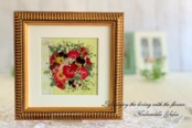 ゴールドアンティークフレームの中に、真っ赤なミニバラがかわいく映える押し花額です。