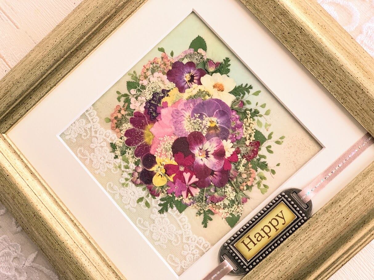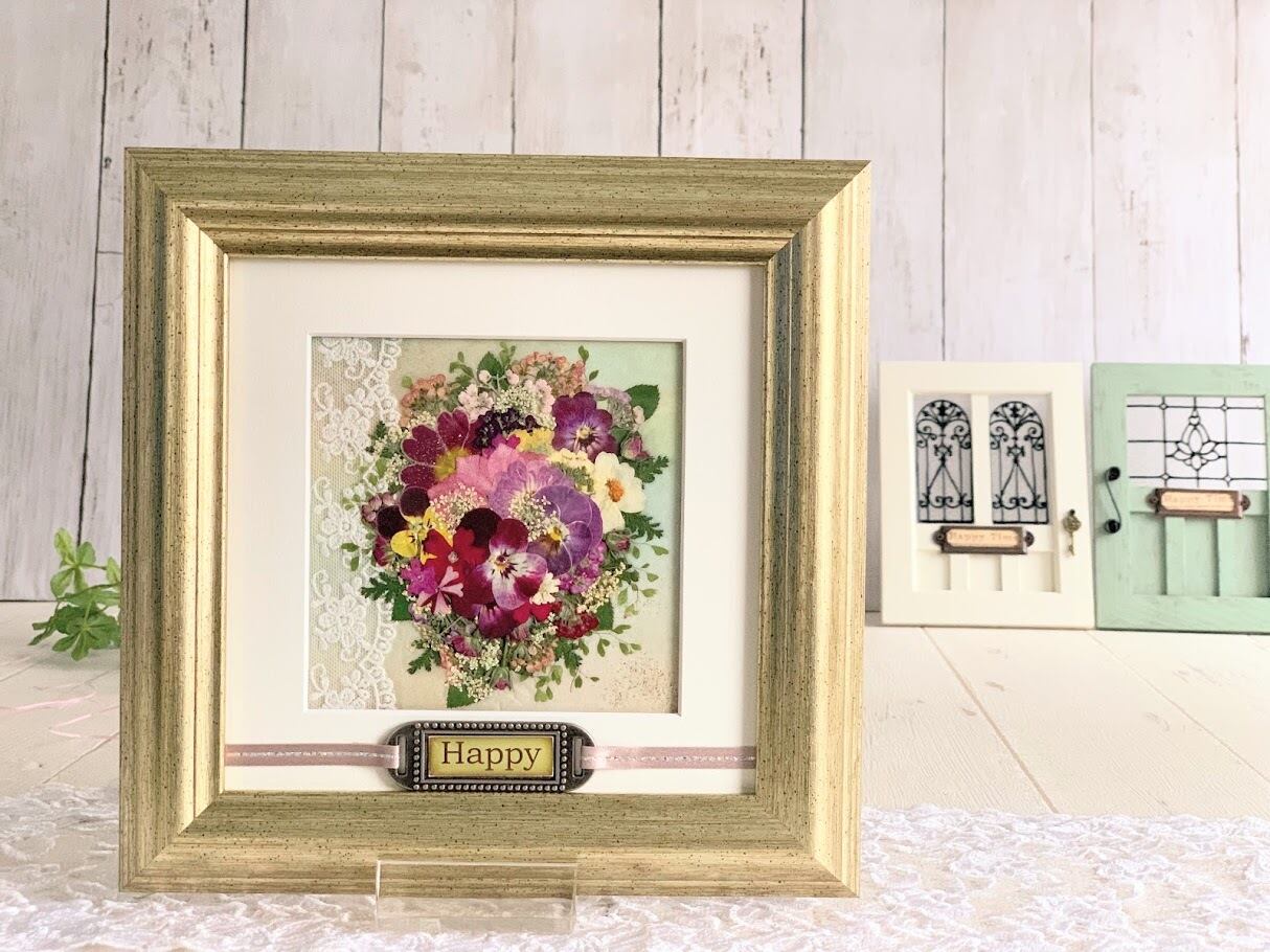 「母の日」にぴったり!気品あふれるアンティークゴールド押し花額 01