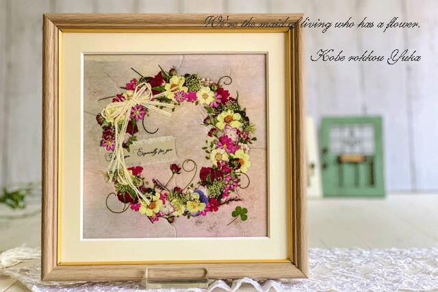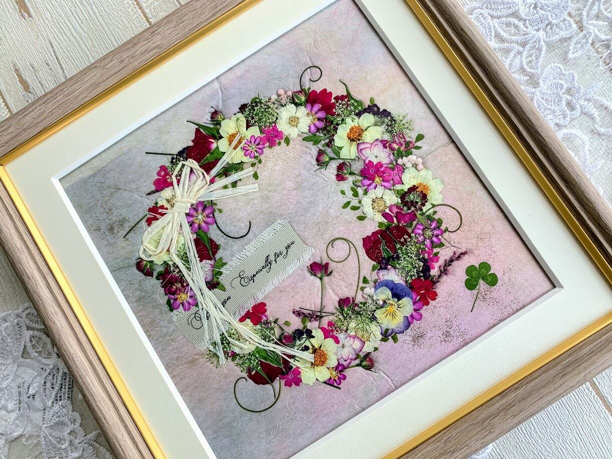 「母の日」やインテリアにもピッタリ!おしゃれなリース押し花額02