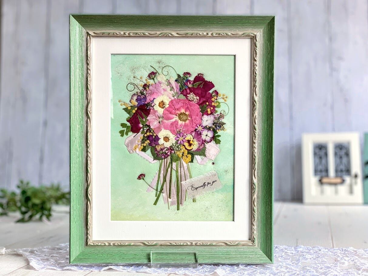 「母の日」やインテリアにもピッタリ!おしゃれな花束押し花額001