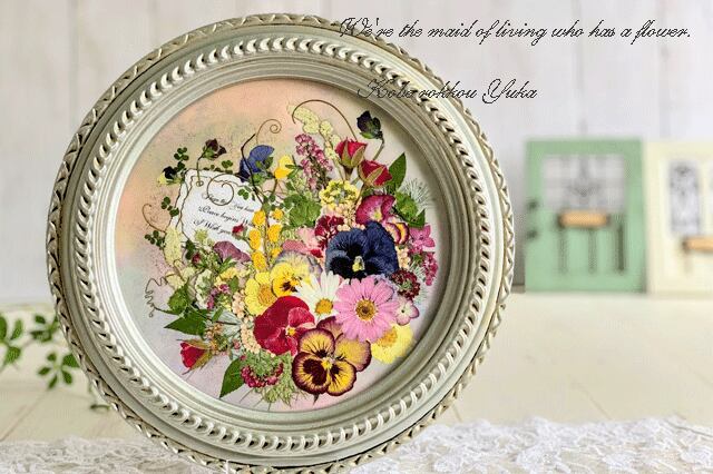 何枚にも重ねた和紙が幻想的な押し花アートです。