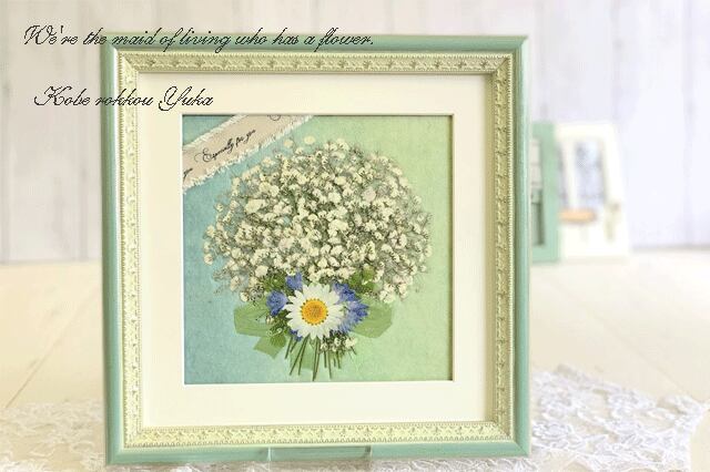 小さな押し花がぎゅっと詰まった押し花アートです。