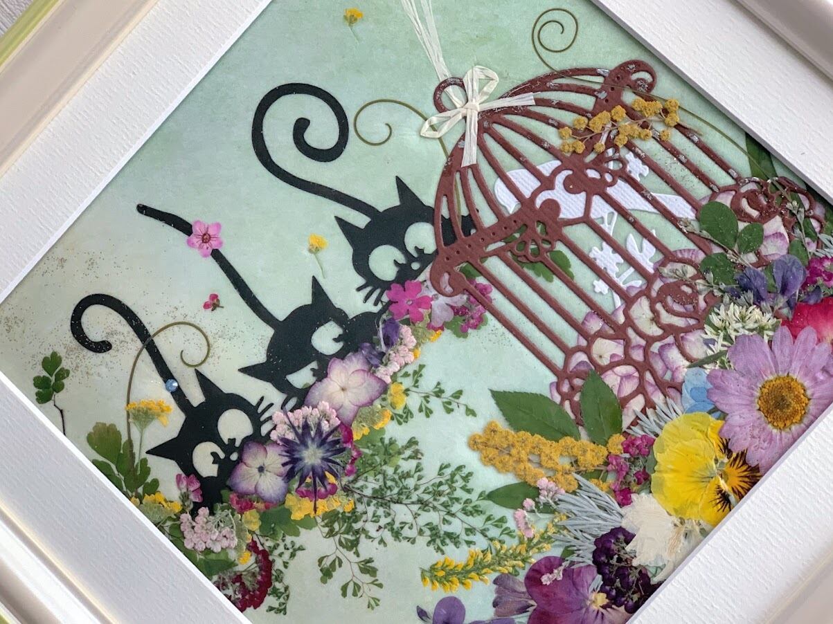 ネコ好きなお母さんにもにぴったり!黒猫さん押し花額03
