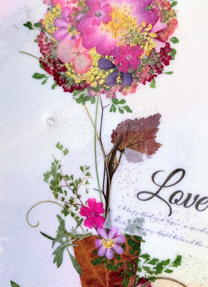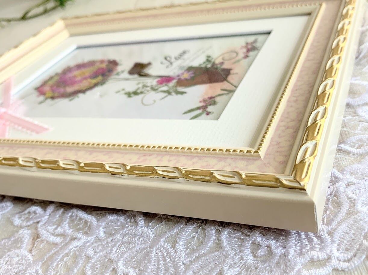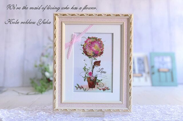 淡いピンクのかわいいフレームに押し花がたくさんはいった