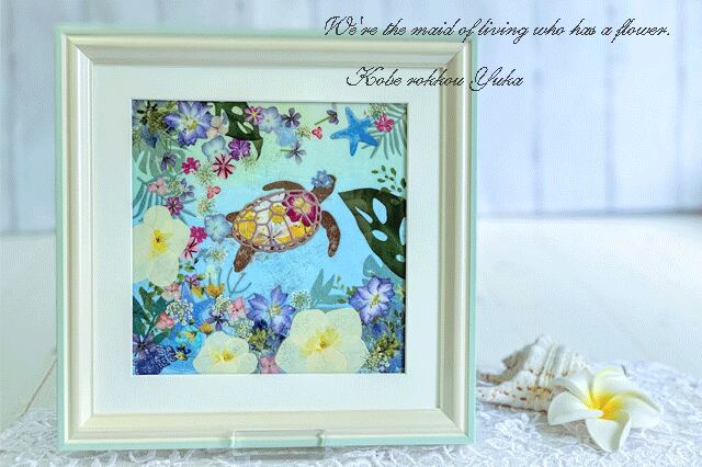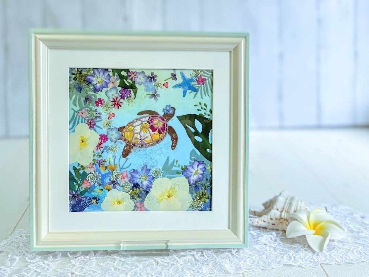 幸せを運ぶウミガメ、プルメリアの香る南の島の押し花額