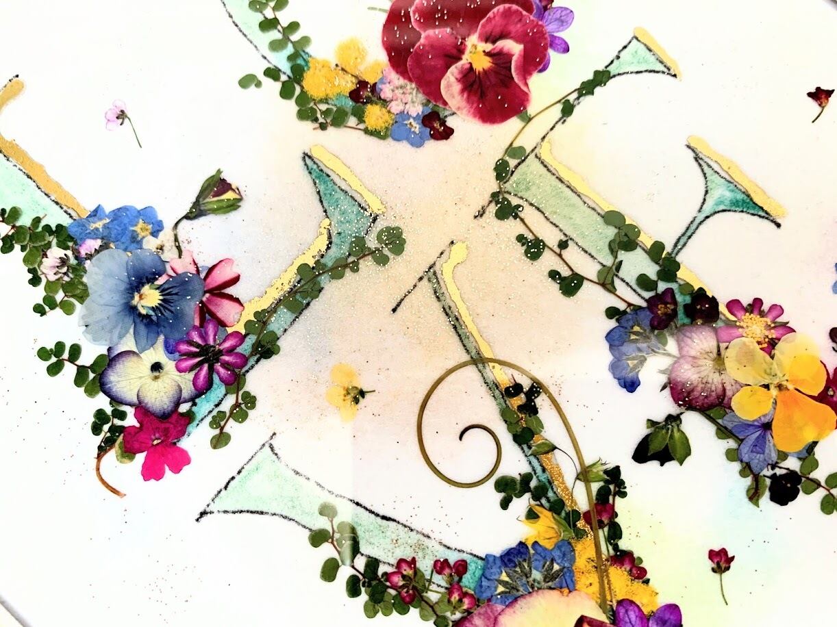 「LOVE」の文字を可愛い押し花で華麗に飾った押し花アート額です。